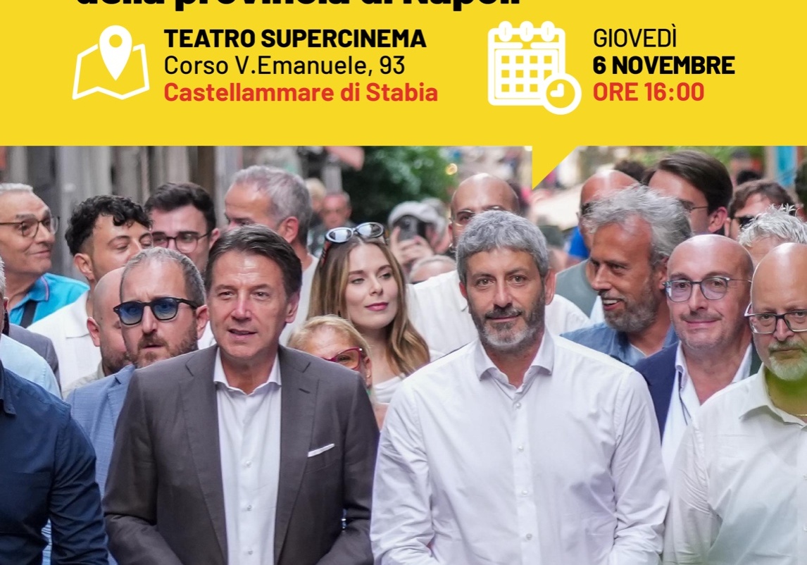 Il Movimento 5 Stelle fa tappa a Castellammare di Stabia in vista delle elezioni regionali del 23 e 24 novembre 2025.